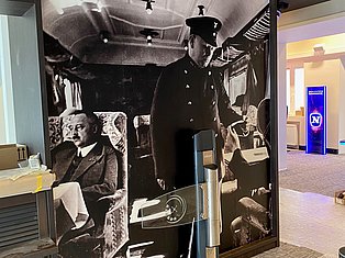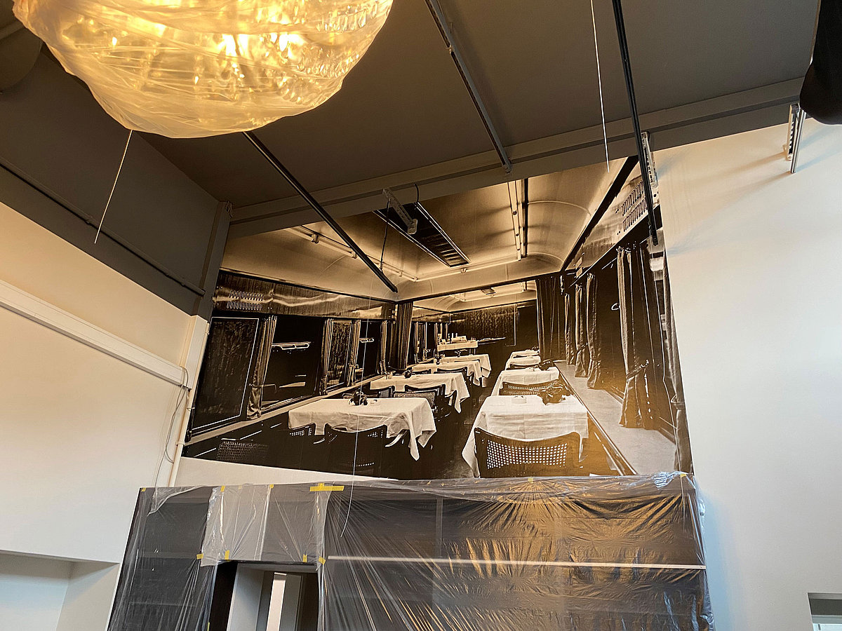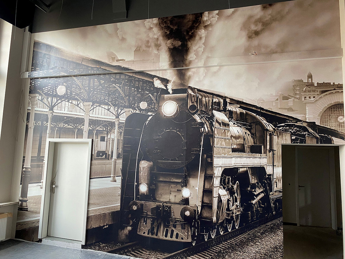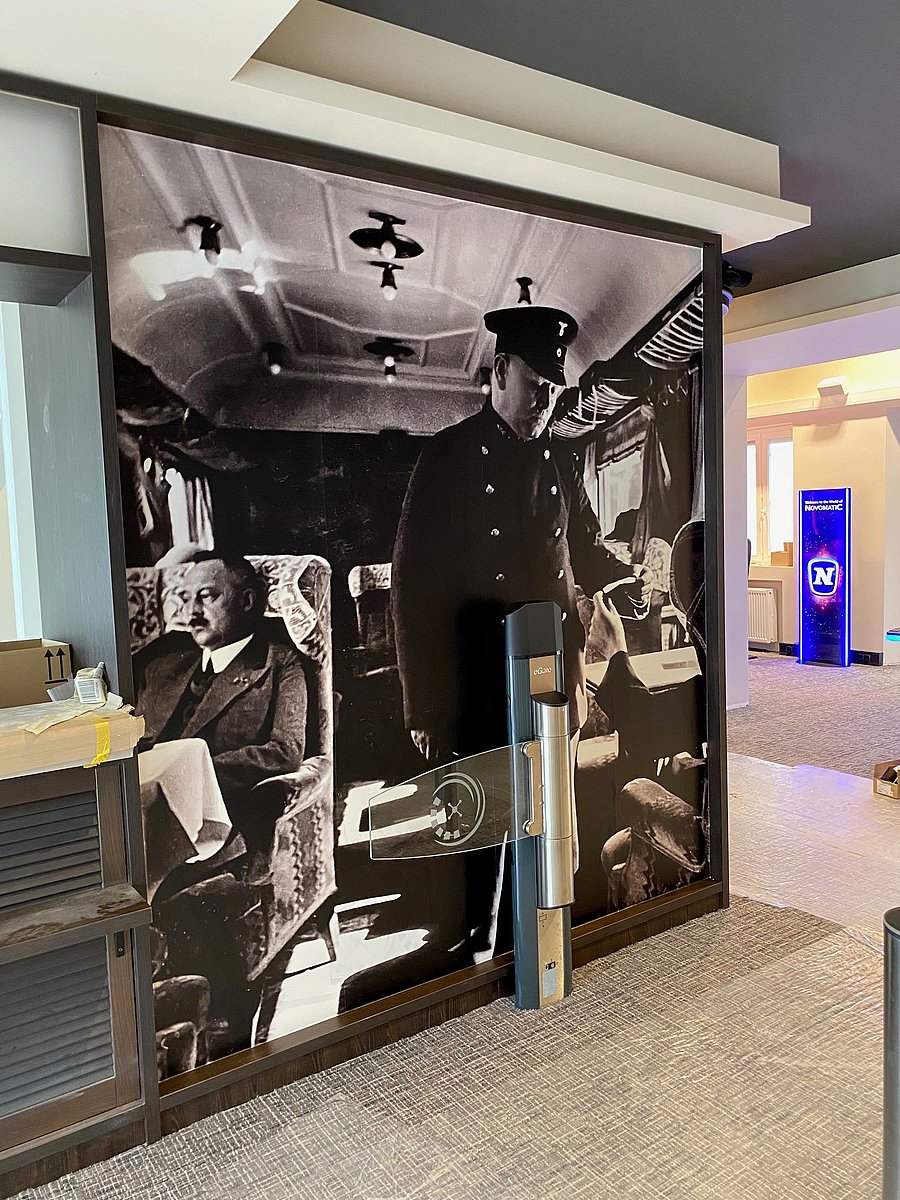Wandtapete mit einem Zug in der Spielbank Bad Neuenahr