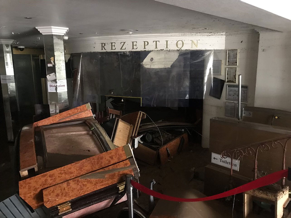 Gebäude und Spielautomaten nach Flutkatastrophe beschädigt